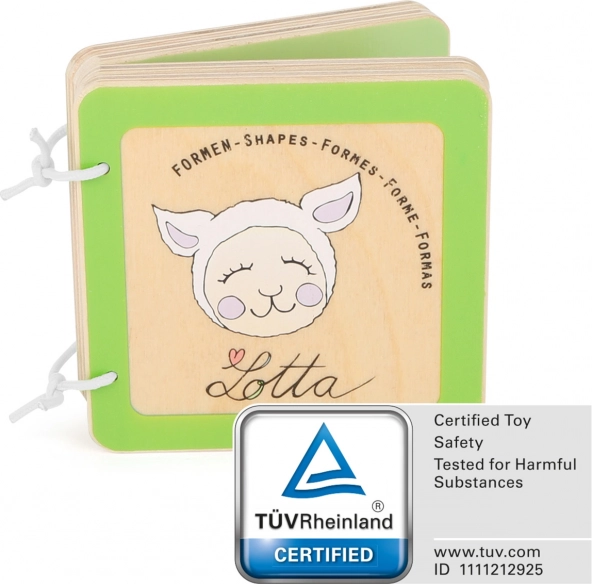 A LOTTA fa könyvecske kifejezetten 12 hónapos kortól ajánlott kisgyermekek számára. Játékos módon segít megismerni az alapvető formákat, és fejleszti a vizuális és tapintási észlelést. A tartós fa oldalak erős gyűrűs kötése bírja a mindennapi használatot, és könnyen tisztán tartható.