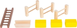 Ez a fa tanya úgy lett megtervezve, hogy támogassa a gyerekek fantáziáját. Az olyan részletekkel, mint a nyitható tetők és a tolóajtók, a gyerekek különféle tanyasi jeleneteket játszhatnak el.