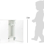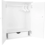 Ez a fehér babaruha szekrény ideális kedvenc babáid ruhásszekrényének rendben tartásához. Praktikus kialakítása lehetővé teszi a ruhák egyszerű felakasztását és a kis tárgyak szervezését, ami tökéletes gyerekjátékokhoz.