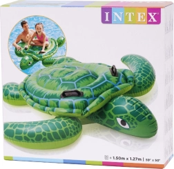 Az Intex teknős alakú felfújható matraca ideális társ a vízi játékokat kedvelő gyerekek számára. Ez a 150 cm-es matrac tartós PVC anyagból készült és biztonsági fogantyúkkal van ellátva.