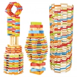 Engedd szabadjára a gyermek fantáziáját a Jeujura Técap Color építőkészlettel, mely 500 színes faelemet tartalmaz a végtelen alkotási lehetőségekhez és a finommotorika fejlesztéséhez.