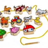 Ez a fa fűzős játék ideális eszköz a legkisebbek számára. Segítségével a gyerekek megismerkednek a hagyományos magyarországi állatokkal és kicsinyeikkel. A felfűzéshez kapcsolódó játékos tevékenységek ösztönzik a történetmesélést, és nemcsak a türelmet fejlesztik, hanem a színek felismerését is.