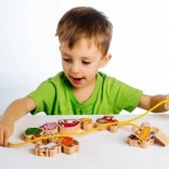 A minőségi fából készült fűzős játék segít a gyerekeknek felismerni a magyarországi állatokat, fejleszti a finommotorikát, erősíti a koncentrációt és a kézügyességet.