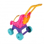 Ültesd be a babát, csatold be, és irány a séta! A Teddies Buggy Sport babakocsi rózsaszín–lila színösszeállításban támogatja a képzeletet és a mozgásfejlődést a mindennapi játék során. A strapabíró műanyag bírja a beltéri és kültéri használatot, a nagy kerekek pedig stabil és egyenletes gurulást biztosítanak.