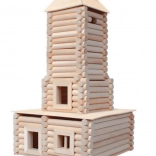 A Vario XL építőkészlet minőségi, 15 mm átmérőjű tömör bükkfából készül. A készlet 184 darabjának köszönhetően végtelen kreatív lehetőséget kínál. A dobozban mindent megtalál, ami különféle modellek összeállításához szükséges, beleértve a 9x9 mm keresztmetszetű fa léceket, orom- és tetőelemeket, ablak- és ajtókivágásokat kartonból, valamint papírnyomatokat a pontos részletekhez.