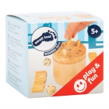 Játék után minden pálcikát és kockát a fa hengerbe tehetsz. Nincsenek elveszett darabok, a játék pedig mindig készen áll az utazásra.