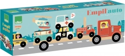 A gyerekek szállíthatják, sorba rendezhetik és felhelyezhetik a taxit, a rendőrséget, a tűzoltókat, a mentőt, a helikoptert és a kisbuszt. Remekül segít a városi járműszerepek megismerésében.
