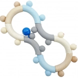 Magas minőségű fa csörgő, ideális a képzelőerő serkentésére és a gyermek finom motorikus készségeinek fejlesztésére. A csörgő szemet gyönyörködtet pasztell színeivel, és etikus módon, környezetbarát erdőkből származik.