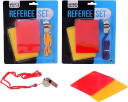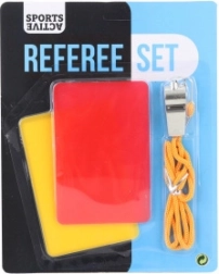 Ez a kompakt játékvezetői készlet mindent tartalmaz, ami a pályán történő gyors és egyértelmű kommunikációhoz szükséges. A nyakpánttal ellátott fém síp hangos és tiszta jelzést biztosít, a sárga és piros lap pedig egyértelmű és azonnali döntéshozatalt tesz lehetővé a játék során.