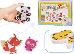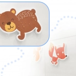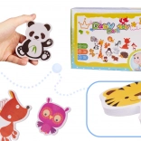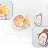 Vidám motívumok, mint zsiráf, tigris, majmocska vagy sün, amelyek élénk színeikkel felkeltik a gyerekek érdeklődését, és támogatják a kreatív kirakást és mesélést.