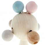 Magas minőségű fa játék, amely serkenti a képzeletet és pasztellszíneivel felkelti a figyelmet. Játékos módon fejleszti a gyermek finommotorikáját. A hosszan tartó használat érdekében kerülje a túlzott vízhatást, és a játékot csak nedves ruhával tisztítsa. Ne forralja ki a csörgőt, ne tegye sterilizálóba, és ne használjon más sterilizálási módszereket.