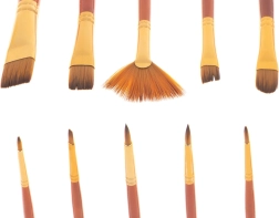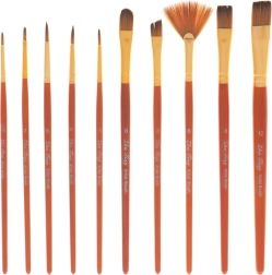 A készlet 10 darab művészecsetet tartalmaz, amely különböző festéktípusokhoz használható. A különböző vastagságú végek segítenek összetettebb formák létrehozásában, a vékony ecsetek pedig lehetővé teszik a művészeti alkotások minden részletének finomítását. Mindegyik ecset számozott, ami könnyíti a megfelelő méret kiválasztását.