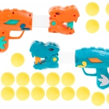 Két stílusos, dinoszaurusz alakú pisztoly lehetővé teszi a puha habgolyók biztonságos és hatékony lövését. Ideális páros játékokhoz és versenyekhez.