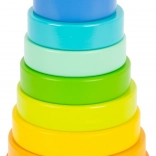 Tíz élénk színű koronggal és pálcával, lekerekített talppal ez a torony támogatja a finommotorika fejlődését és a színek megkülönböztetését.