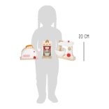 A strapabíró fa kivitel bírja a mindennapos játékot, és az átgondolt tartozékoknak köszönhetően a gyerekek „eszpresszót, cappuccinót és lattét” készíthetnek, megpiríthatják a pirítósokat és tésztát keverhetnek. A készlet remek kiegészítő a játékkonyhákhoz, és tökéletes ajándék a kis szakácsoknak.