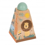 Ez a tartós fából készült játék lehetőséget nyújt a gyermekeknek motorikus készségeik és kéz-szem koordinációjuk fejlesztésére. Hat darabból áll, melyek helyes összerakása vidám állatokat tár fel, amelyek a szafarin élnek. A torony nemcsak oktatási eszközként kiváló, hanem esztétikailag is megjeleníti színes, vidám dizájnját minden gyerekszobában.