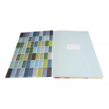 A kemény borító dombornyomott kockamintája nemcsak jól mutat, hanem megkönnyíti a füzet azonosítását tapintás alapján is.
