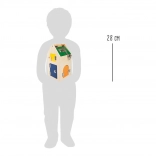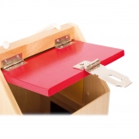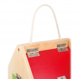 A házikó minőségi fából, erős fémrészekkel készül, ezért intenzív használat mellett is tartós. Kompakt méretének és praktikus fogantyújának köszönhetően könnyen hordozható – ideális utazáshoz, óvodába vagy a gyerekszobába. A színes elemek felfedezésre csábítanak és segítik a színek felismerését.