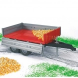 Bruder billenő pótkocsi piros egy hű mása a kéttengelyes pótkocsinak, amely életre kelti bármely játékjelenetet. Fő előnye a billenő rakfelület és a nyitható oldalsó és hátsó panelek, amelyek megkönnyítik a rakomány kezelését.
