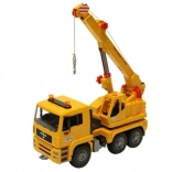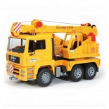 Részletgazdag modell kis építőknek: a BRUDER MAN TGA darus teherautó 1:16 méretarányban 360°-ban forgatható daruval, teleszkópos karral (tekerőgombbal vezérelhető), teljesen működő csörlővel kioldóval, puha, mintázott gumiabroncsokkal és stabilizáló támaszlábakkal. Billenthető fülke, lehajtható tükrök és tárolórekesz teszik teljessé a valósághű kidolgozást. Németországban készült, minőségi anyagokból.
