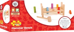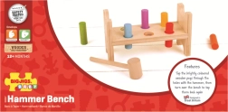 Ez a klasszikus, Bigjigs Baby márkájú fa kalapálós játék egyszerű elvével nyűgözi le a gyerekeket – a pálcikákat a kalapáccsal a nyílásokba kell beütni, majd elég a padot megfordítani, és a móka kezdődhet elölről. Az élénk színek ösztönzik az észlelést és támogatják a figyelem összpontosítását.