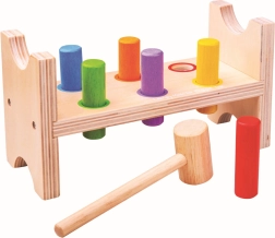 Szórakoztató és biztonságos fa kalapálós játék a legkisebbeknek, amely fejleszti a kéz–szem koordinációt és a finommotorikát. A színes pálcikáknak és a masszív fa kalapácsnak köszönhetően a gyerekek a pontosságot és a fogóerőt is gyakorolják. A játék lekerekített élekkel rendelkezik, minőségi fából készült, és megfelel az európai biztonsági szabványoknak.
