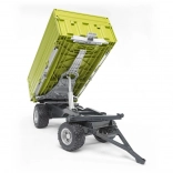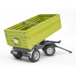 Ez a részletgazdag FLIEGL utánfutó ideális kiegészítő a BRUDER 3000-es sorozatú traktoraihoz. Az elülső részen található kapcsolóval könnyedén kiválasztható a billentés iránya – hátra, balra vagy jobbra. Oldalirányú billentésnél az oldalfalak nyithatók, a magasító felépítmények pedig igény szerint eltávolíthatók.