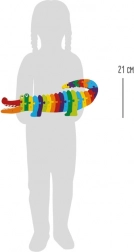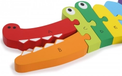 Színes, fa krokodil alakú kirakó, amely játékos formában segít a gyerekeknek elsajátítani az ábécét és a színeket. A készlet 26 darabból áll A–Z betűkkel, melyek egy egésszé illeszkednek. A sima, lekerekített élek és a biztonságos anyagok CE tanúsítvánnyal kényelmes és biztonságos játékot biztosítanak. Kiváló a finommotorika és a kéz–szem koordináció fejlesztésére, ideális otthonra és óvodákba is.