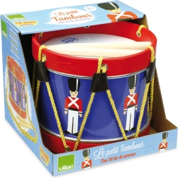 Fejleszd a zenei érzéket és a ritmusérzéket ezzel a minőségi VILAC gyermekdobbal. Színes, katonás motívumú design, két fa dobverő és egy arany színű, fonott pánt a kényelmes, nyakban hordható viseléshez – öröm a kis zenészeknek. A fa szerkezet, az ellenálló kivitel és a könnyű megszólaltatás ideális választássá teszik az első zenészlépésekhez.