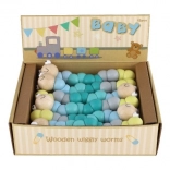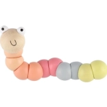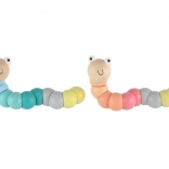 Ez a fa kukac/hernyó sima, színes szegmensekből áll, amelyek egymáshoz kapcsolódva lehetővé teszik a könnyű hajlítást különböző formákba. A kellemes pasztell árnyalatok és a mosolygós arc miatt a gyerekek azonnal megszeretik. Ideális a játékos időtöltéshez és a finommotorika, valamint a kreativitás erőfeszítés nélküli fejlesztéséhez.