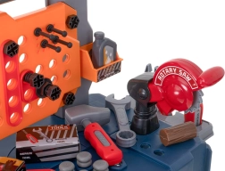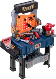 Ez a hordozható bőrönd könnyen gyerek munkapaddá alakítható, sok tárolóhellyel – az alsó ládától a nagyobb darabok számára, a szerszámoknak szánt perforált falon át, egészen a két polcig és a tágas munkalapig. A gyerekek megismerkednek az alap barkács-ismeretekkel, és biztonságosan kipróbálhatnak olyan tevékenységeket, mint a „csavarozás”, „kalapálás” vagy „fűrészelés”.