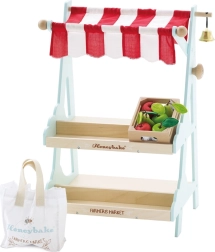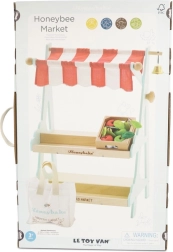 Le Toy Van Méhecskés Árusító Stand ideális a gyerekek számára, akik szeretnek piaci árusosat játszani. Ez a készlet mindent tartalmaz, ami a fantázia és a szociális interakciók támogatásához szükséges.