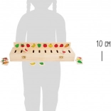 A Small Foot minőségi fa motorikus válogatója kiváló választás a gyerekek finommotorikájának, logikájának és szókincsének fejlesztéséhez. A gyerekek a motívumokkal ellátott négyzet alakú elemeket a betolható táblák megfelelő nyílásaihoz párosítják, miközben játékos formában tanulják meg felismerni a színeket, formákat és a mindennapi élet tárgyait.