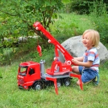 Ez a piros MERCEDES ACTROS darusautó a Lenától minden kis építőt lenyűgöz. A forgatható karnak, a működő csörlőnek és kötélnek, a kihúzható stabilizáló lábaknak és a kerekeket rögzítő ékeknek köszönhetően valósághű és biztonságos játékélményt nyújt. Csehországban készült, tartós műanyagból, és beltéren valamint kültéren is használható.