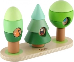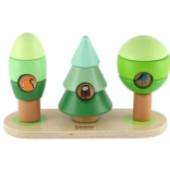Ez a bájos erdei rakosgatható játék örömet ad a gyerekeknek a formák, színek és az egyszerű összerakási elvek felfedezésében. A különálló elemekből három zöld fa áll össze, és mindegyik más állatkát rejt – baglyot, harkályt és mókust. A masszív fának és a kellemes kidolgozásnak köszönhetően a készletet a legkisebb kezek is könnyen megfogják.