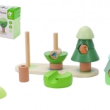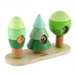 Állíts össze három gyönyörű, zöld fát 16 fa elemből. A gyerekek variálhatják a formákat és a sorrendet, így saját erdőváltozatokat hozhatnak létre.