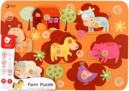 Fedezze fel a farm szépségét ezzel a fa kirakóval, amely támogatja a finom motorikus képességek fejlődését és az állatok felismerését a 18 hónapos kortól gyermekeknél.