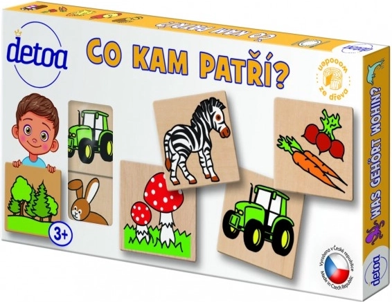 Detoa fa puzzle Mi hova tartozik egy didaktikai játék, amely segít a gyerekeknek felismerni a tárgyakat és hozzárendelni őket a megfelelő képekhez. Ez a játék ideális a logikai gondolkodás és a memória fejlesztésére 3 éves kortól.