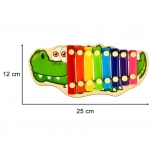 Fedezd fel a zene örömét a kedves, krokodil alakú xilofonnal. A nyolc különböző hangnak köszönhetően a gyerekek könnyedén eljátszhatják első egyszerű dallamaikat. A hangszeres játék támogatja a kreativitást, türelmet, koncentrációt, és segít kialakítani a ritmusérzéket.