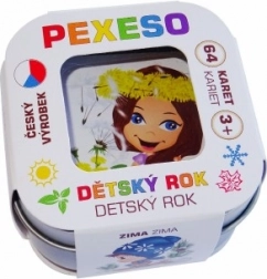 Fedezze fel a szórakoztató Pexeso Gyermekév játékot – 64 kártyából álló készlet a gyermekek tevékenységeit ábrázoló illusztrációkkal az év minden szakában. A vízálló kártyák tartós kivitele és a praktikus 6 × 6 × 4 cm-es fém doboz ideális otthonra és útra, és kiválóan edzi a memóriát és a koncentrációt.