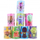 Bádogpersely szörnyecskés mintával, kb. 15 × 10 cm méretben. Tasakban csomagolva. A persely nem nyitható. Ajánlott életkor: 3+