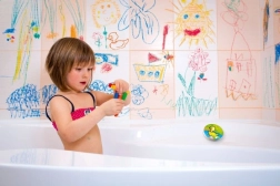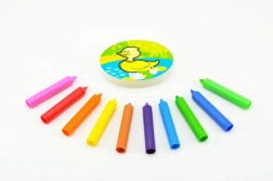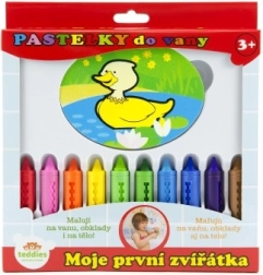 Ez a tíz darabos, élénk színű készlet egyedülálló Első állatkáim dizájnnal kínál kreativitást és jókedvet fürdőszobájába. A gyerekek a krétákkal műalkotásokat hozhatnak létre a kádon és a csempéken.