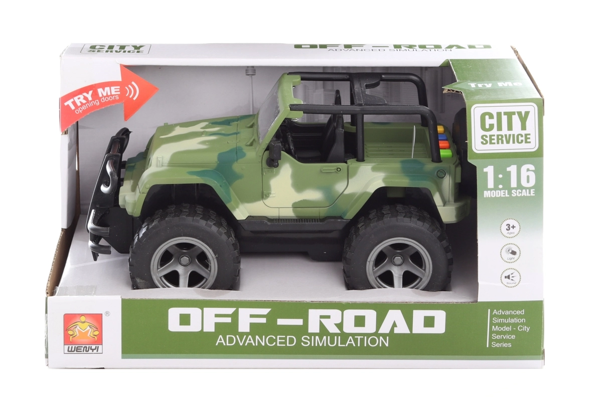 Szórakoztató, elemes dzsip 3 éves kortól, amely akciódús játékot kínál élethű effektekkel. 4 autóhangot, tartós műanyag kivitel és kompakt méretek jellemzik az egyszerű hordozhatóság és tárolás érdekében.