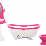 Glorie fürdőszoba ideális kiegészítő minden babaházhoz. Tartalmaz egy elegáns fésülködőasztalt mosdóval, egy kádat és egy WC-t, mindezt minőségi műanyagból.