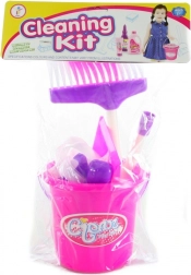 Szórakoztató takarítókészlet kis segítőknek, amely mindent tartalmaz az otthoni takarításhoz – kis vödör, seprű, felmosó, lapát és kefe. Ideális a finommotorika és a játékos fantázia fejlesztésére. Könnyű műanyag anyag, komplett felszerelés és 3 éves kortól ajánlott.