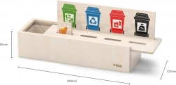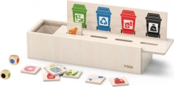 Ez az oktatójáték a VIGÁtól ideális azoknak a gyerekeknek, akik most ismerkednek a szelektív hulladékgyűjtés alapjaival. Fa dobozzal érkezik, amelyen nyílások vannak a lapocskák bedobásához, valamint egy táblával a különböző szemetesekkel. Tartalmaz továbbá 50 fa lapocskát hulladék-ábrákkal és az újrahasznosítási kategóriáknak megfelelő színekkel.