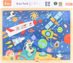 Ez a minőségi, 48 darabos fa kirakó izgalmas űrbéli kalandot kínál a gyerekeknek. A színes illusztrációk – bolygók, rakéták és űrhajósok – fenntartják a figyelmet, és támogatják a természetes kíváncsiságot. A puzzle masszív fa keretben található, amely megkönnyíti a kirakást és a hordozást.