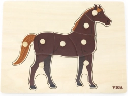 A ló élethű motívumával készült Montessori beillesztő önálló felfedezésre és koncentrációra ösztönzi a gyerekeket. A praktikus fogantyúknak köszönhetően könnyen megfogják az egyes elemeket, megtanulják felismerni az alakzatokat, és gyakorolják a pontos mozdulatokat. A természetes fa és a barna ló kontrasztja jól kirajzolódó körvonalakat ad, amelyek játékra csábítanak.