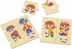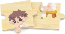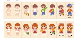 Ez a minőségi, fából készült oktatójáték a helyes öltözködési sorrendet tanítja meg a gyerekeknek egymásra épülő elemek kirakásával, fiú és lány ábráival. Minden elem egyedi motívummal rendelkezik és pontosan illeszkedik, így játék közben a gyerekek gyakorolják az összefüggések felismerését és a türelmet.