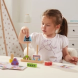 A csomagban különféle mintakártyák találhatók – a gyerekek lépésről lépésre építve gyakorolják a logikát, a figyelmet és a pontosságot.